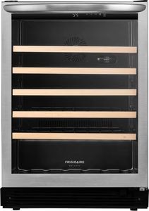 This Frigidaire Gallery wine cooler holds up to 57 bottles and offers precise temperature control to keep your wine at the perfect temperature. The elegant design with a stainless-steel door, tinted window and wood-trim wire shelving will complement your room and our reversible door gives you the flexibility to ensure a perfect fit.Read More