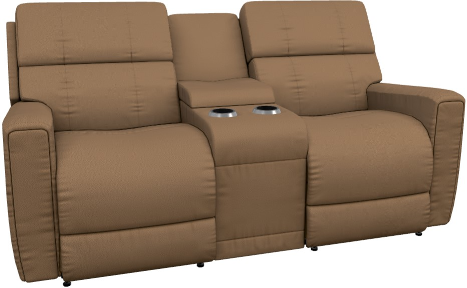 Take command of relaxation and convenience on the Apollo reclining loveseat with console. Padded track arms add a modern boost. Tall, cozy bucket chaise seats recline to optimal comfort. And the console keeps snacks, drinks and remotes under control.Read More