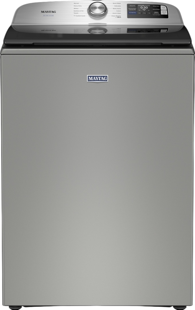 Get a clean you can see with the Maytag® pet pro washer that's built to trap and remove pet hair. Press the pet pro option to activate the built-in pet pro filter to visibly remove pet hair. Extra power boosts stain fighting on any wash cycle so you can walk away while stains wash away. The deep fill option delivers more water when you want it with your choice of deeper water levels, while the built-in water faucet delivers a quick rinse or a long soak leaving clothes ready for the wash cycle. Plus, smart washer features help you stay in control and efficiently manage laundry from anywhere. Maytag™ app to remotely start or stop your appliance and get end of cycle notifications.Read More